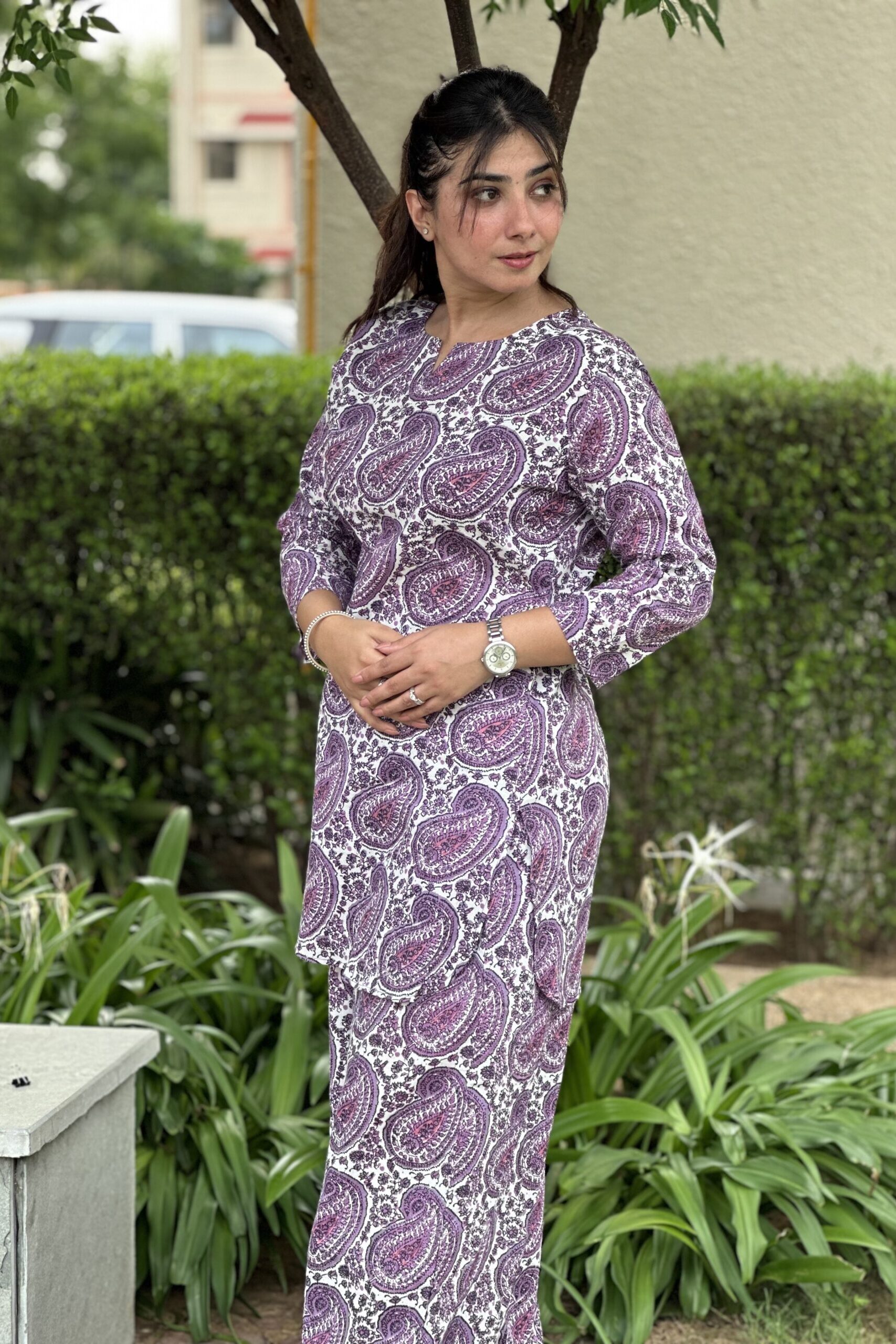 Simplicity redefined in our comfortable fit pure cotton co ore sets. The breathable cotton fabric ensures day-long ease, while the subtle screen prints lend an understated sophistication. Each motif is thoughtfully screen-printed on soft, breathable cotton, creating a look that’s relaxed yet refined. Whether you’re sipping chai on your balcony or exploring a weekend market, this set moves with you — effortlessly stylish, naturally beautiful.