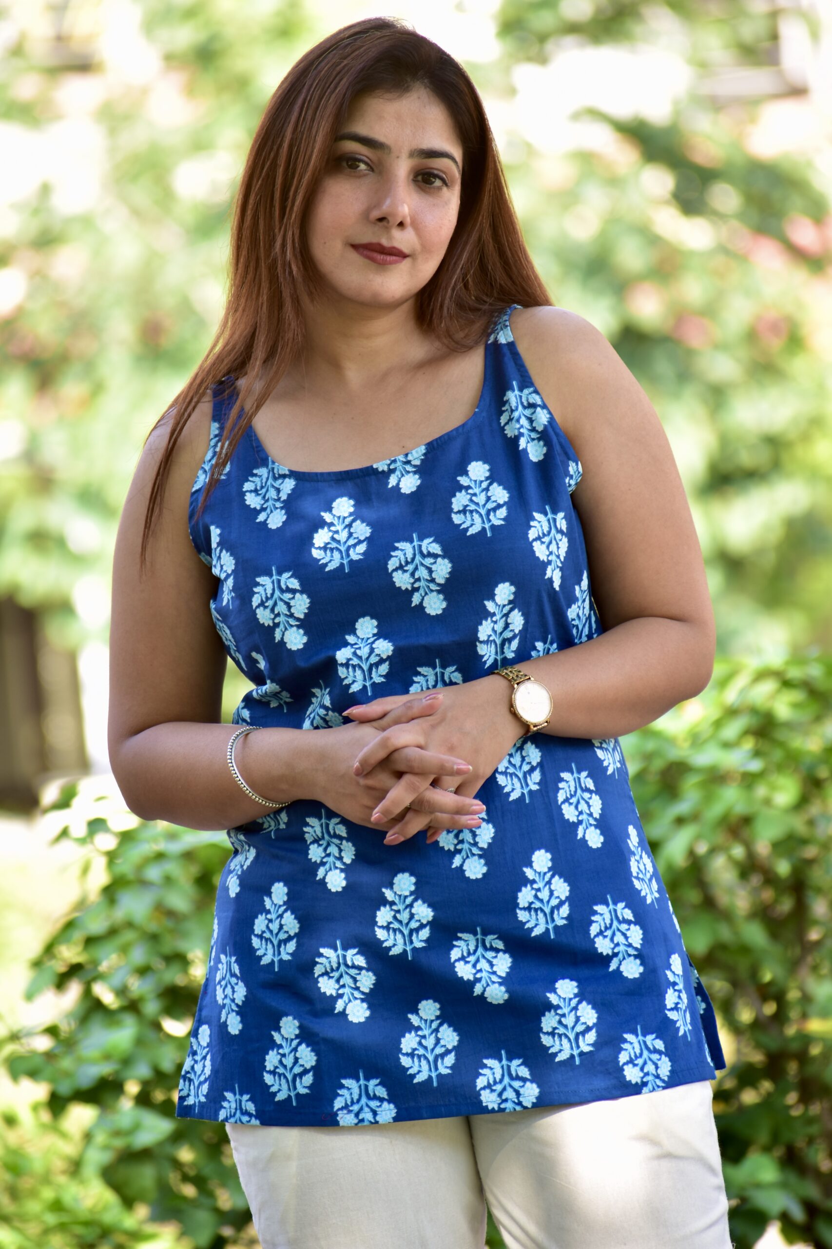 Crafted from breathable 100% pure cotton, this short kurti keeps you cool and comfortable all day long. Designed with wide straps for a modern, stylish look, it’s the perfect blend of simplicity and statement.